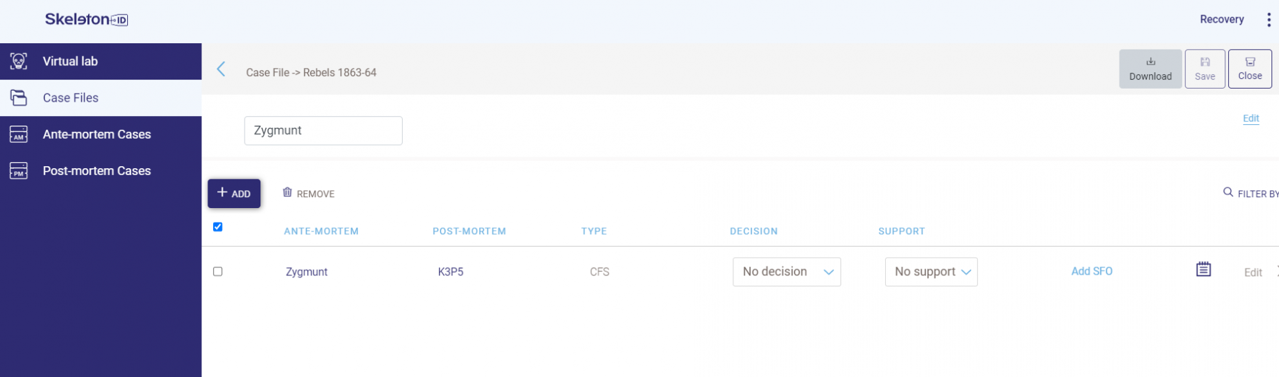 Within the reports section we must select the option “add report” and a pop-up window will appear (Figure 2) in which we must assign a name, describe the methodology that we have used to perform the skull-face overlay and select the AM and PM cases associated with the file for which we want to make decisions and generate the report.